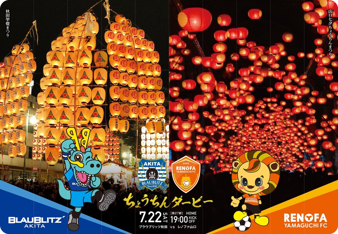 「レノファ山口FC」×「山口七夕ちょうちんまつり」コラボ企画②【応援ハリセンプレゼント】スタジアムを紅ちょうちんで埋め尽くそう! 時間 開門時間~ 場所 各ゲート 「山口七夕ちょうちんまつり」の紅ちょうちんをあしらった、応援で使えるハリセンをサポーター全員に無料配布します。 選手入場時には、ハリセンを広げて掲げ、スタジアムを紅ちょうちんで埋め尽くそう! ハリセンの裏面は、山口の「山口七夕ちょうちんまつり」、対戦相手「ブラウブリッツ秋田」のホーム・秋田の「秋田竿燈まつり」にちなみ、今節のマッチを「ちょうちんダービー」と称して、それぞれの「ちょうちん」をあしらったデザインになっています。