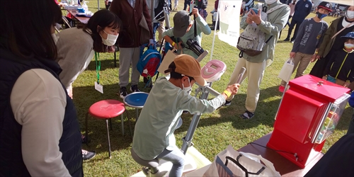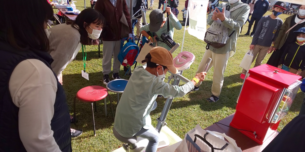エアロバイク発電体験(温暖化とめるちゃネットワークやまぐち) 時間 15:00~19:00 場所 場外正面 エアロバイクを漕いで自分で電気を作ってみよう! 作った電気でガチャガチャが動き、カプセルが出てきます。 COOL CHOICEおみくじ、ノベルティの配布があります。