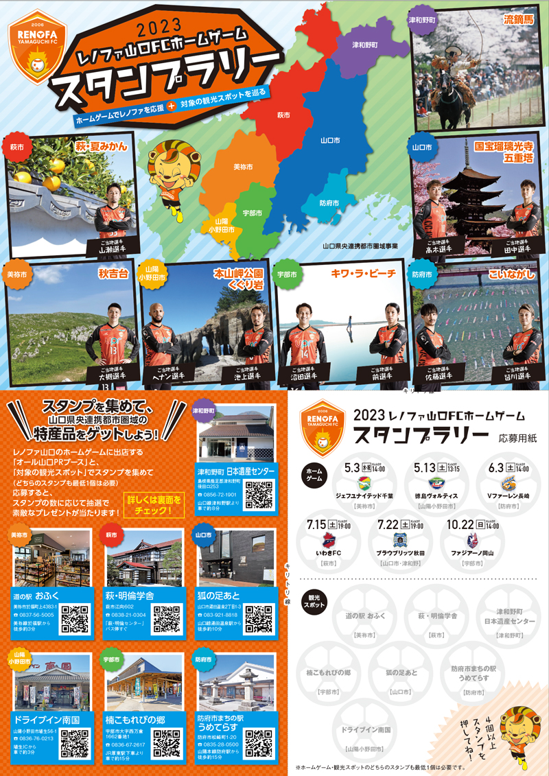 山口県観光PR 時間 9:00~12:30 場所 場外正面 ファジアーノ岡山サポーター限定「山口県の特産品が当たる!!ガラポンお楽しみ抽選会」を実施いたします!【10:30~先着順(お一人様1回限り)】 カタログギフト【ぶちうま山口!「しおさい」】、【山口外郎】他、山口県特産品を多数準備!是非ご来場ください。