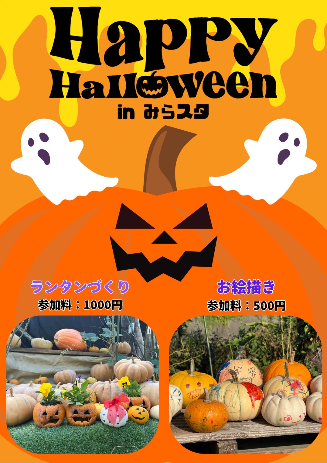 かぼちゃランタン作り&お絵描き 時間 8:30〜12:00(材料がなくなり次第終了) 場所 場外イベント広場 本物のかほちゃを使ってランタン作りやお絵描きをしよう! ・ランタン作り参加料 1000円 ・お絵描き参加料 500円