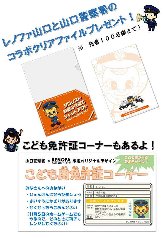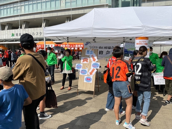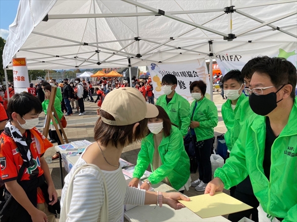 公益社団法人 生命保険ファイナンシャルアドバイザー協会ブース 時間 10:00~12:00 場所 場外正面 生命保険ファイナンシャルアドバイザー協会の活動の一環として、ご協力頂いた募金で県内で災害が起きた際に活用できる「レノファ防災セット」を作成し山口県社会福祉協議会に寄贈致します。 500円以上の寄付につき1枚、レノファ山口選手サインをお渡し致します。(先着100枚 ランダムでお渡し致します。)