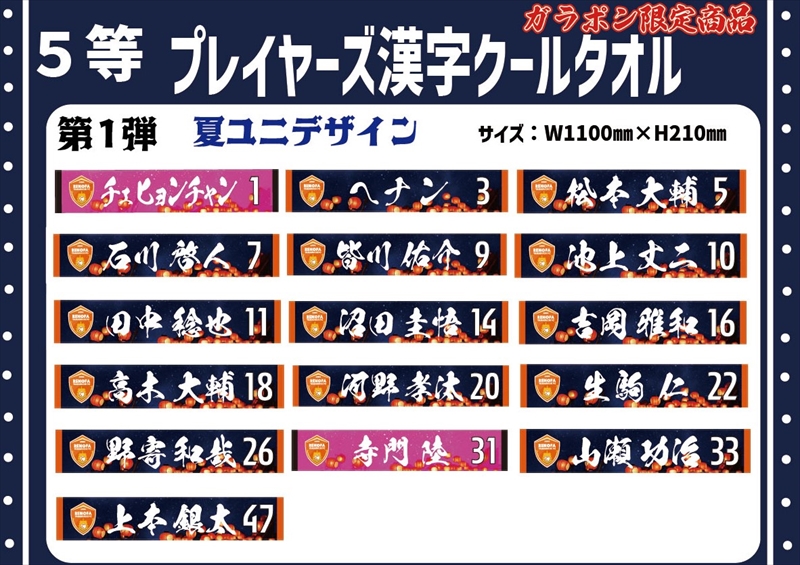 選手の名前が力強くデザインされ、スタジアムで掲げていただくと選手の後押しにもなります!