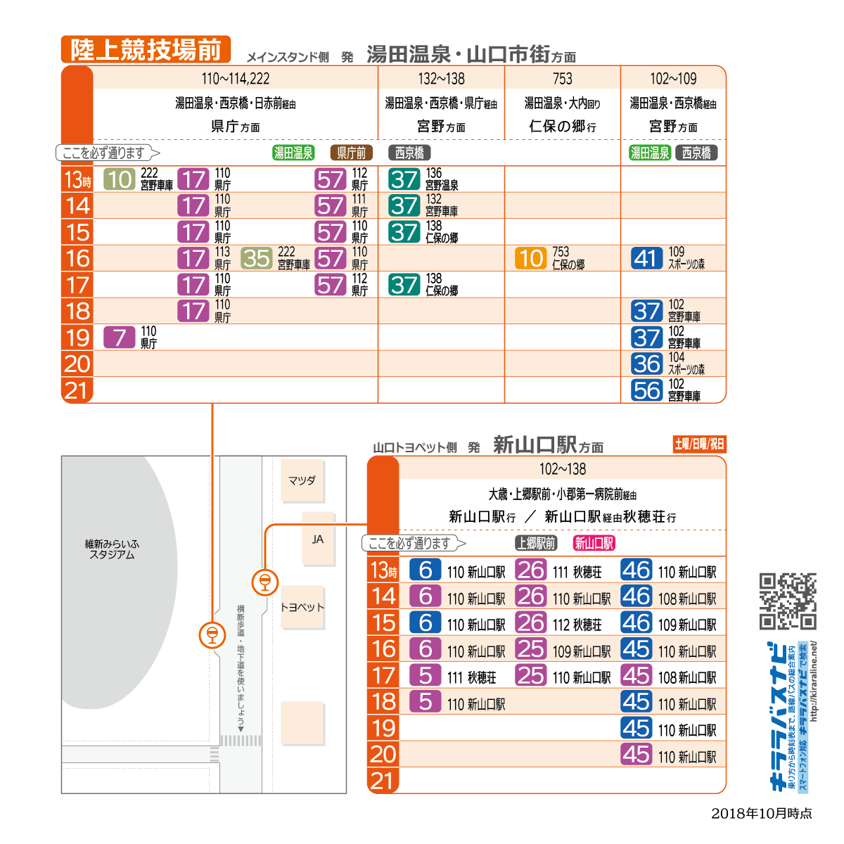 | 陸上競技場前 → 新山口駅 | 21:20 |